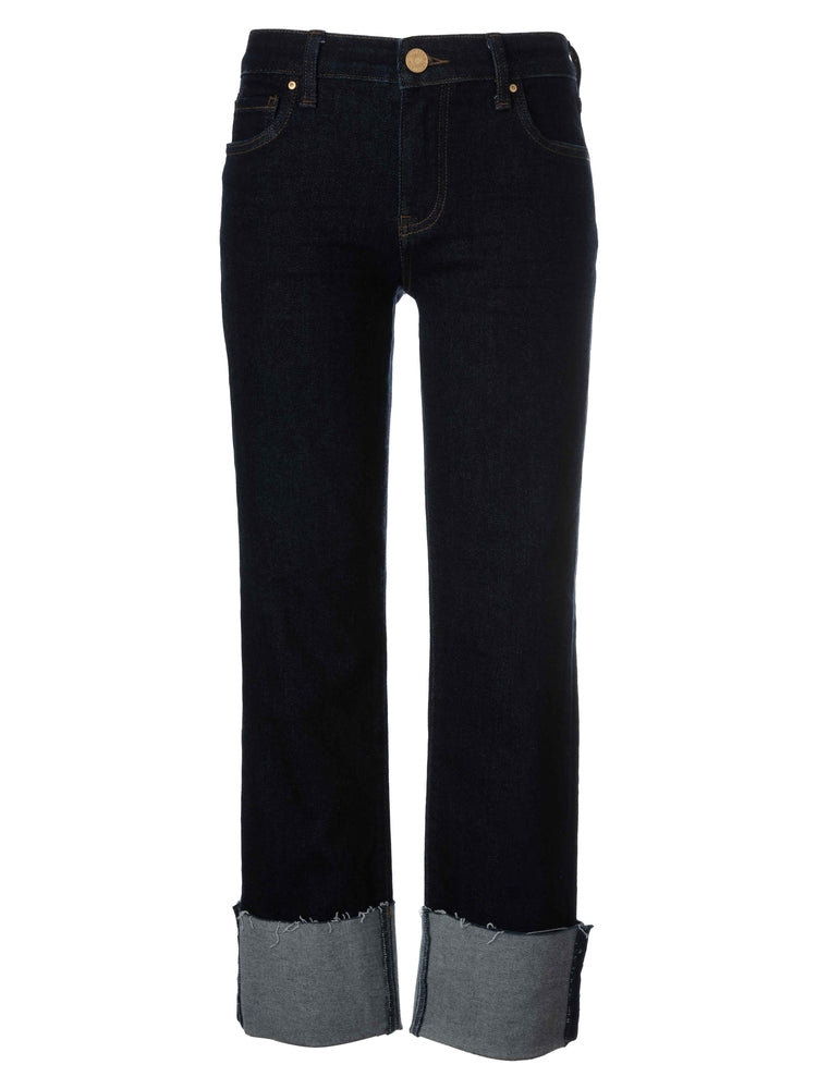 Experience timeless style with the Fay HR Fab Ab Straight Leg Roll Up jeans in a vintage dark denim wash. Crafted for a flattering fit, these jeans feature a straight leg silhouette and a convenient 28-inch roll-up design, offering both comfort and versatility. Perfect for those who appreciate vintage-inspired denim with a modern touch, they elevate casual outfits with durable quality and authentic character.