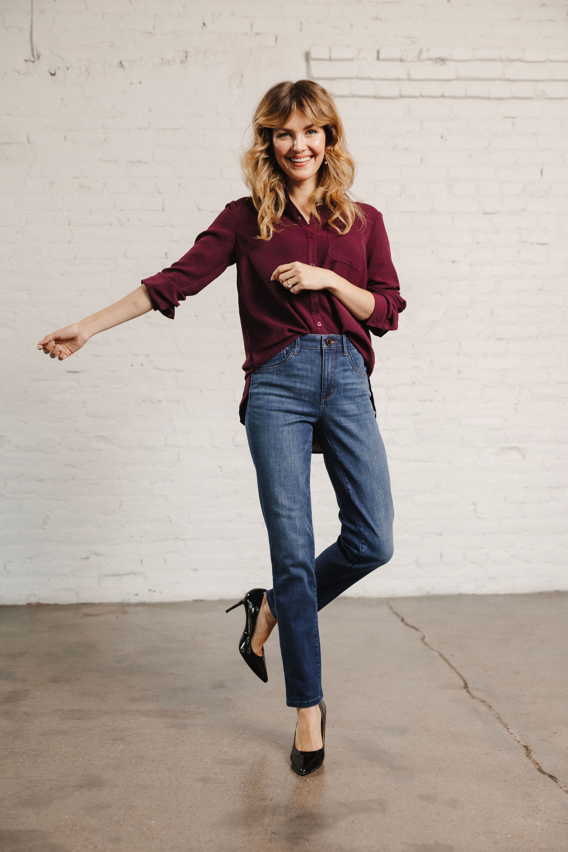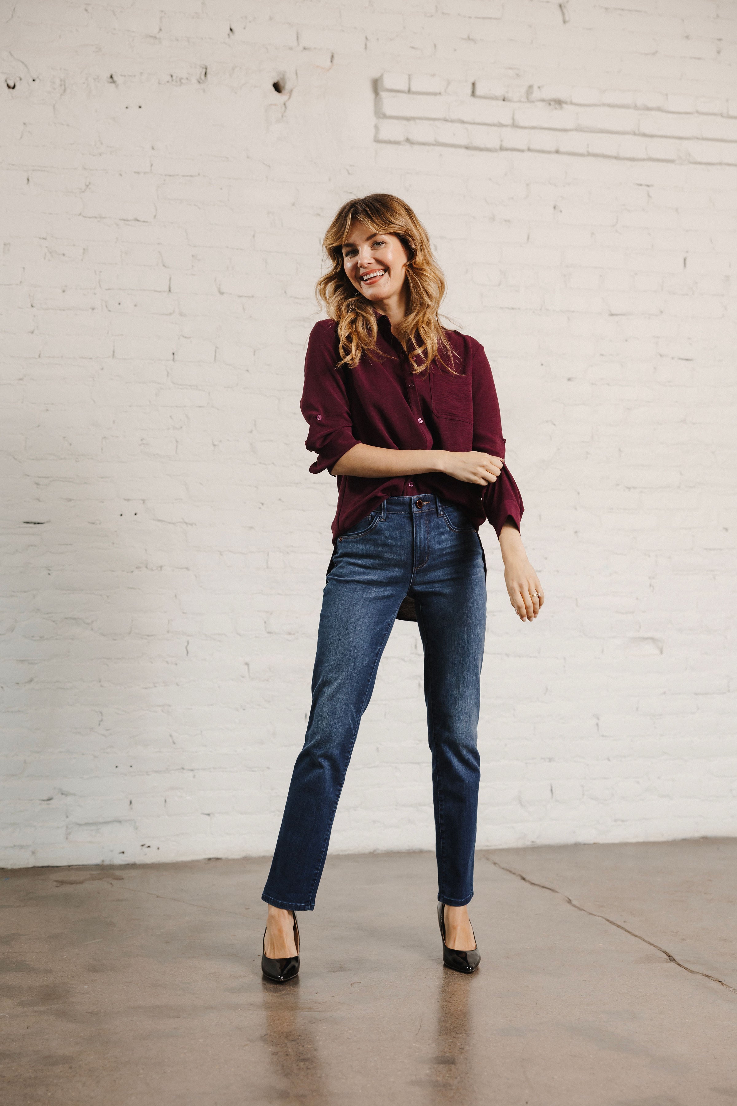Perfect for any occasion, the "AB" Solution technology ensures a smooth silhouette, making these jeans a versatile addition to your wardrobe. Whether you're dressing them up for a night out or keeping it casual for everyday wear, these high-rise straight leg denim pants will be your new favorite pair.