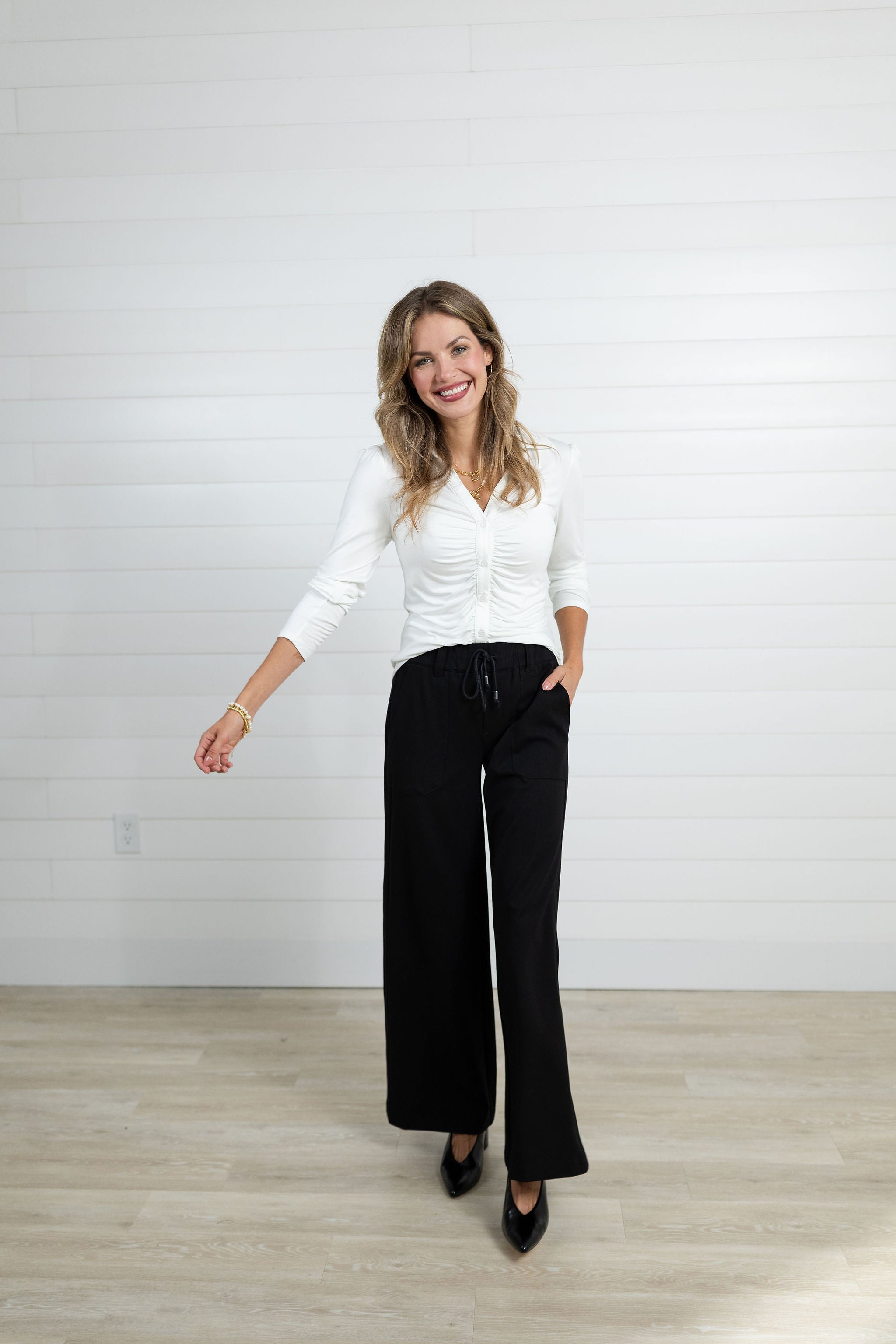 Polish meets comfort in the Mac and Me Ponte High Rise Wide Leg. With a sleek waist tie and double seam detail down the side, these 30" inseam trousers bring elevated ease to your everyday. The ponte knit gives you just the right amount of stretch while our signature Mac and Me technology holds you in and lifts you up. Plus, every pair is stitched with a loving reminder: “You Are So Loved.” 💕