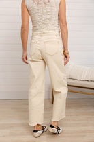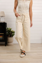 The Mac and Me Skyrise Wide Leg w/ Drawstring is a special piece from our exclusive Mac and Me line — thoughtfully created by our founder and her daughter, Mac. Designed in soft ecru denim with warm brown stitching, these jeans feature a flattering skyrise fit and an easy wide leg silhouette. The drawstring detail at the waist creates a subtle paper-bag effect, blending comfort with intentional style. Finished with a raw hem and classic zipper-and-button closure, they feel relaxed, modern, and made to be lived in.