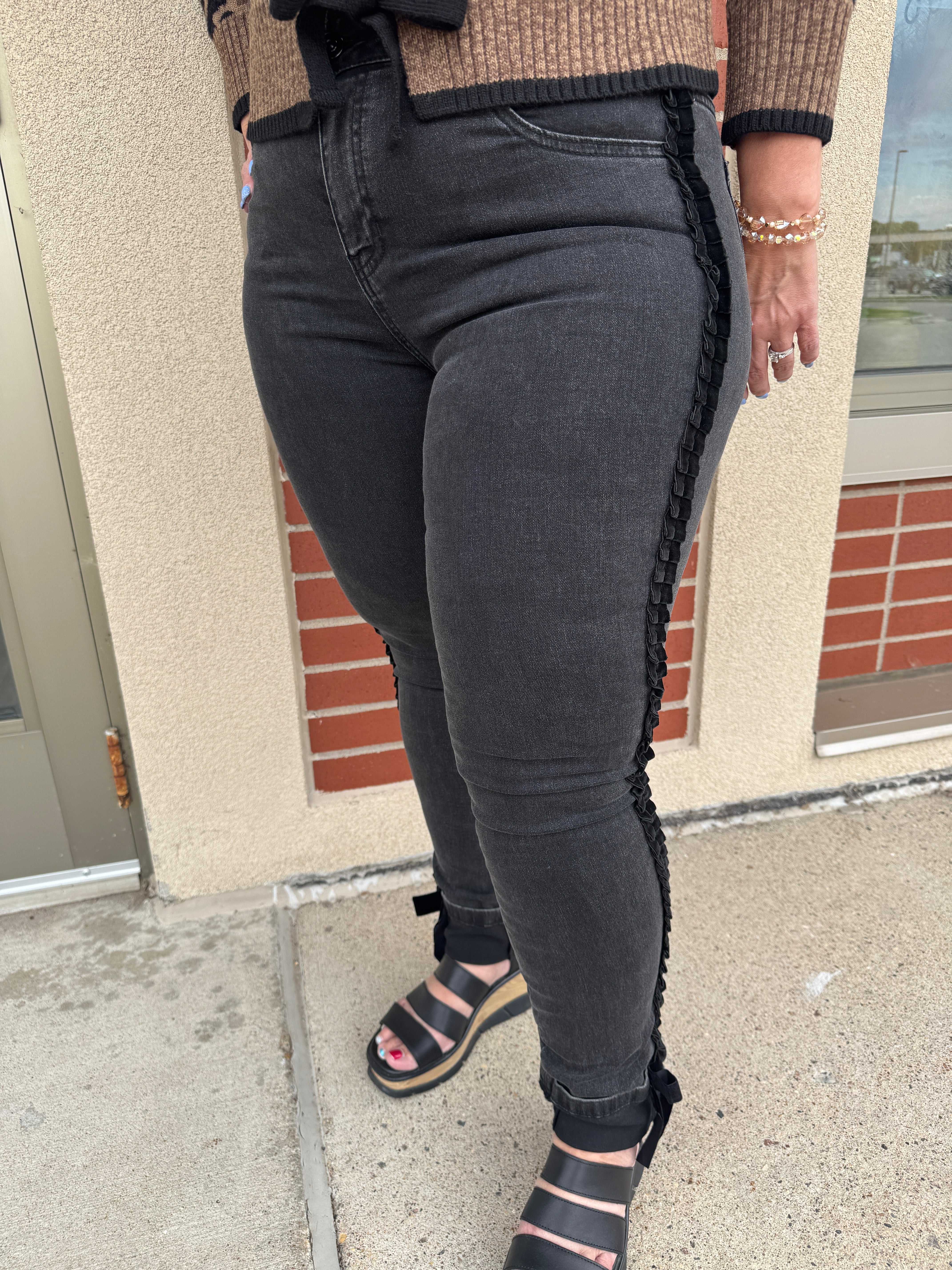 Charlie B Slim Leg Jeans With Velvet Bow 29"ins