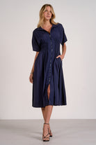 Short Sleeve Midi Dress w smock waist