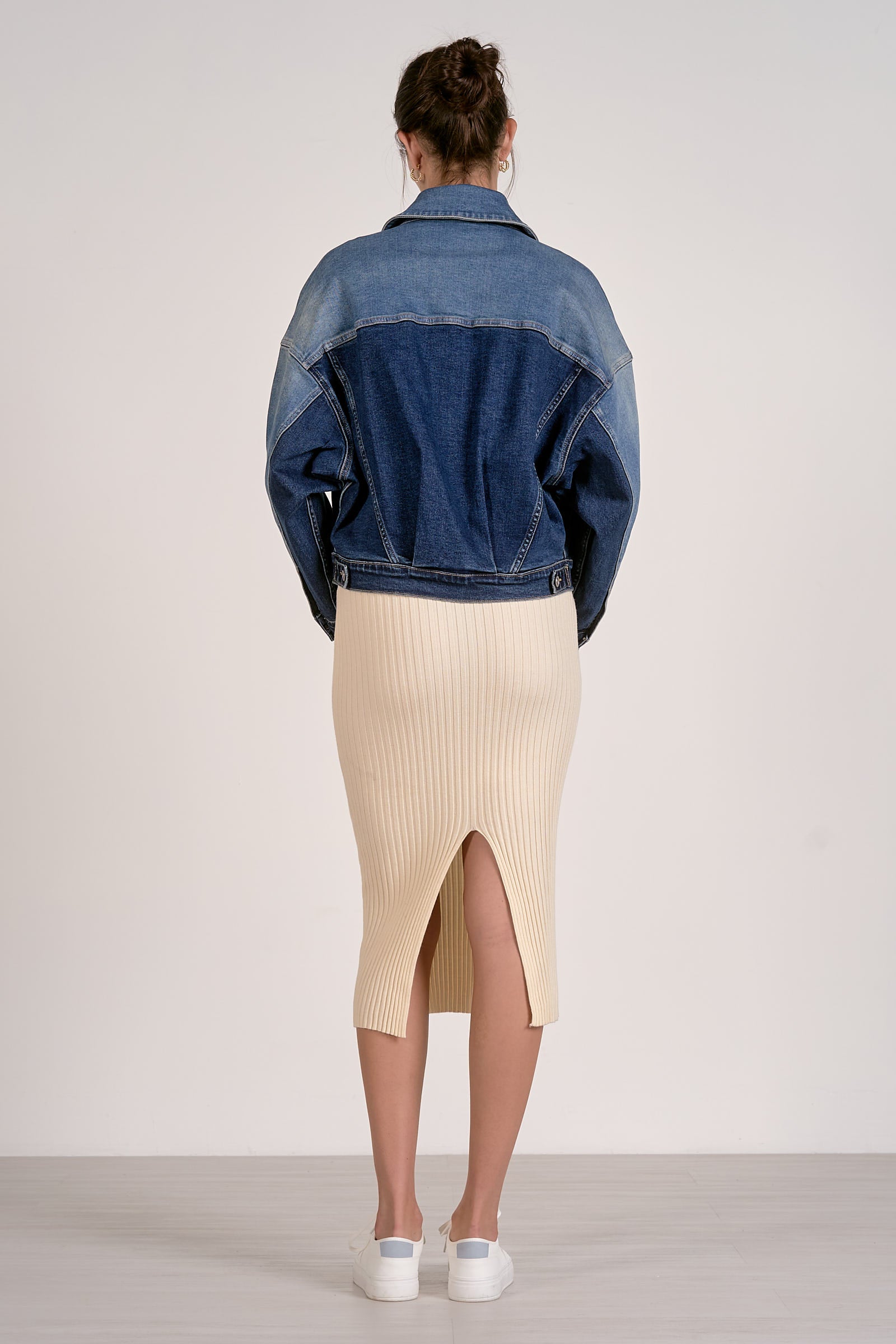 Two-tone denim construction delivers visual interest and versatility for layering across seasons. The contrasting fabric panels create dimension while maintaining the durability and timeless appeal of classic denim. Perfect for transitional styling—wear it open over basics or buttoned as a standalone piece. The structured fit works equally well dressed up or down, making it an essential addition to any curated wardrobe.