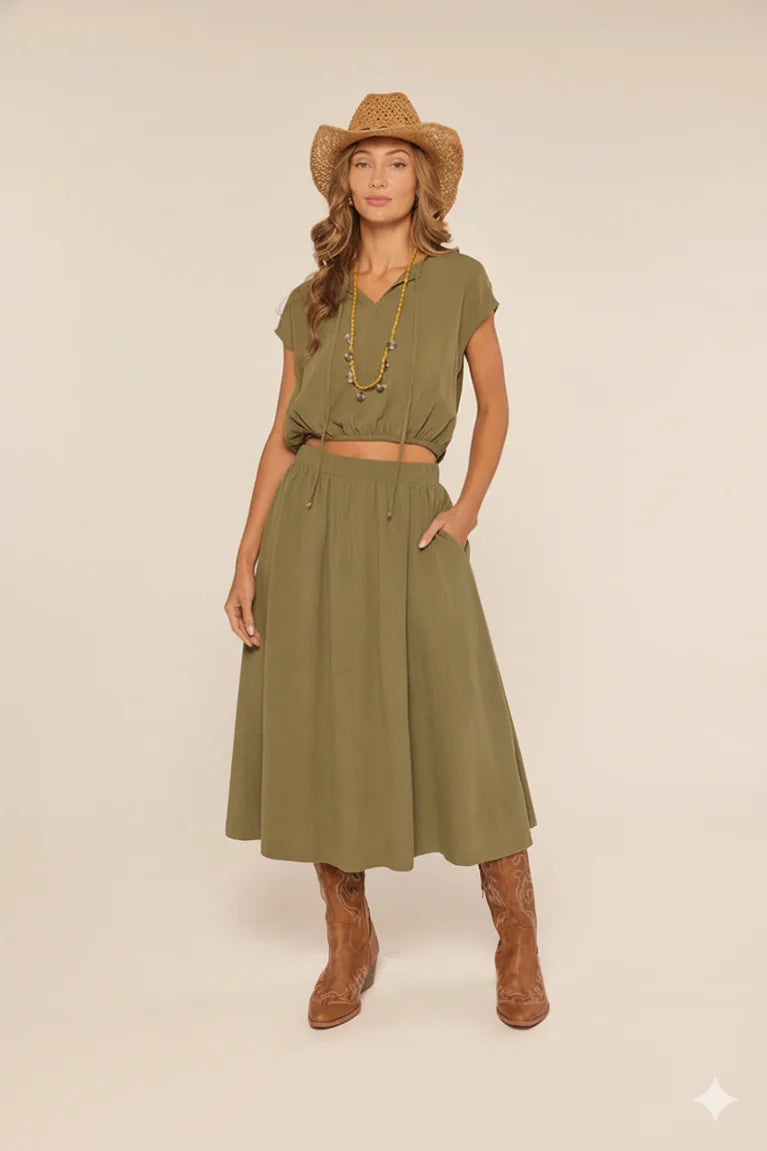 Slip into effortless style with this breezy linen blend maxi skirt. The relaxed silhouette and stretchy waistband make it your new go-to for laid-back days that still look put-together. Perfect for those moments when comfort and chic vibes are non-negotiable.
