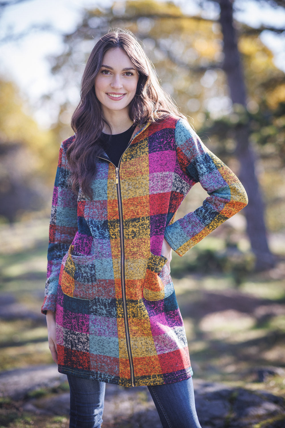 Knitted Multicolor Plaid Sweater Jkt