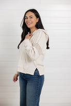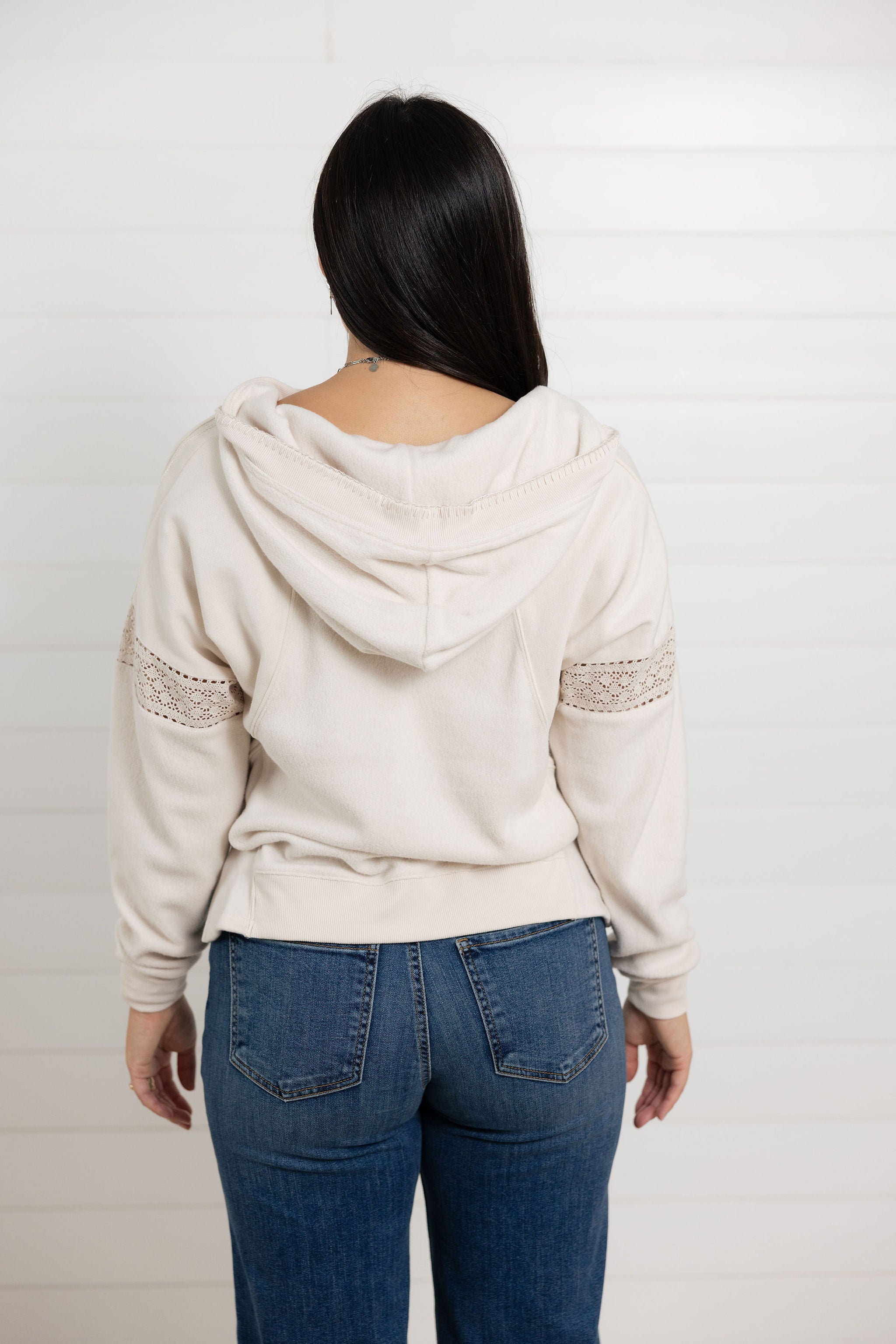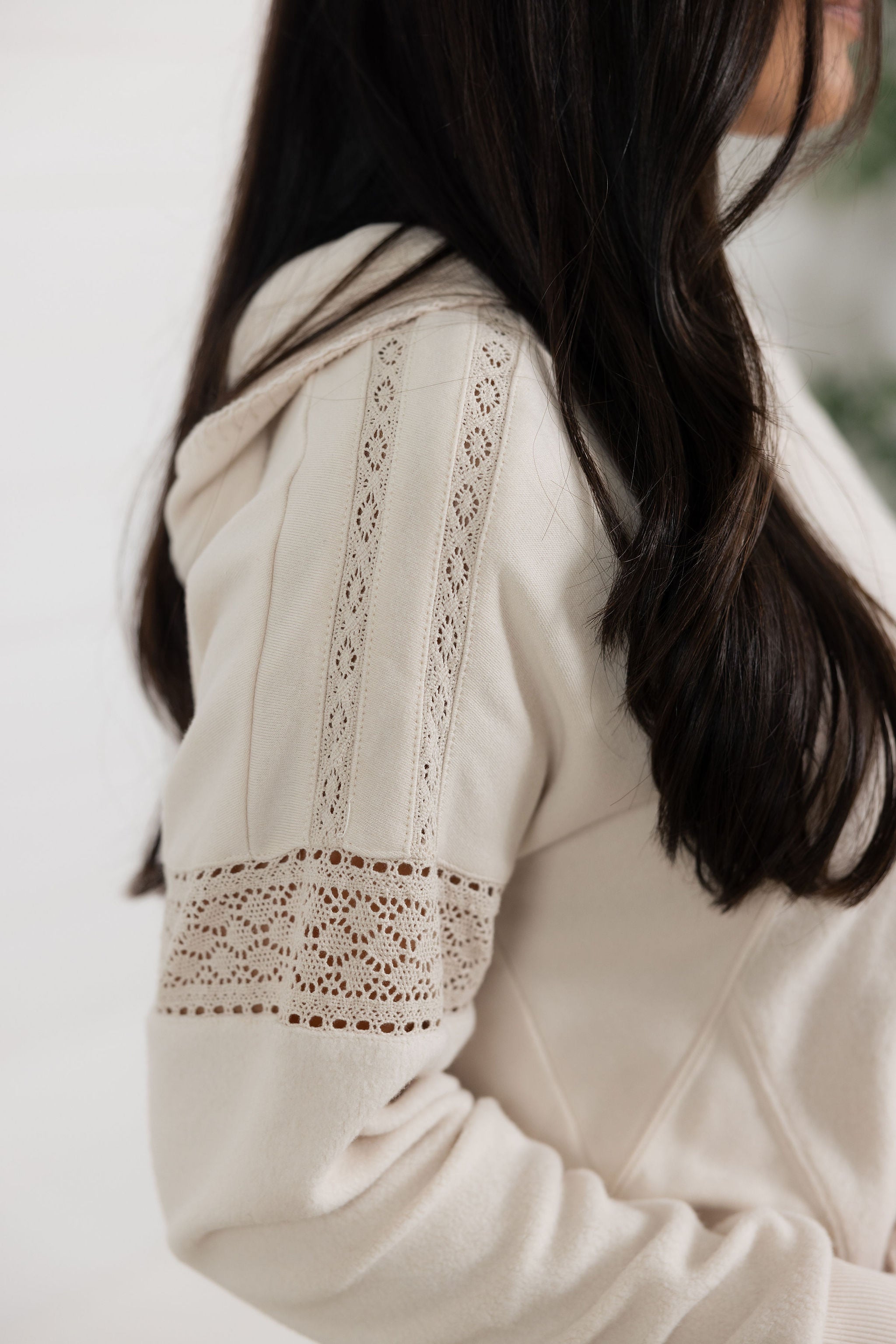 TheĀ Lace Inset & Sherpa Panel HoodieĀ is your new favorite way to do elevated casual. This mixed media knit hoodie blends cozy comfort with standout details that feel thoughtfully designed. Made from a nubby sweater knit in a soft birch tone, it features a flattering V-neck with a half placket, blanket stitch accents, and a beautiful crochet inset for texture and interest. Finished with long banded sleeves and a classic kangaroo pocket, itās relaxed, refined, and anything but basic.