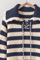 Textured Stripe Cable Knit Wide Collar Sweater