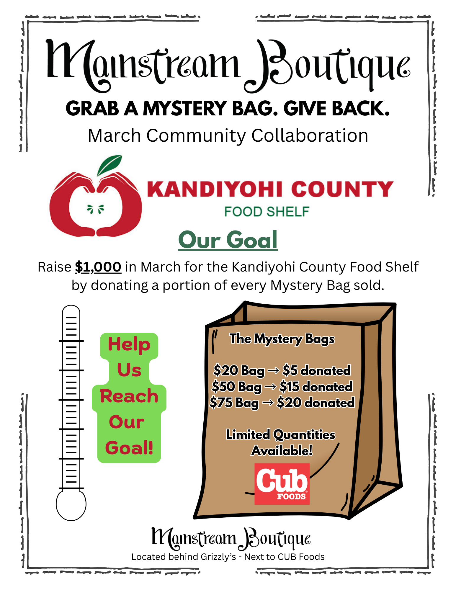 Unbox the excitement with our $50 Mystery Bag—a blind box experience featuring surprise apparel and accessories from Mainstream Boutique. Never know what you'll get until you open it. Each sealed bag contains genuine pieces worth well above the purchase price, making it an ideal way to discover new favorites and add unexpected gems to your closet. Perfect for thrill-seekers and savvy shoppers alike. Limited stock.