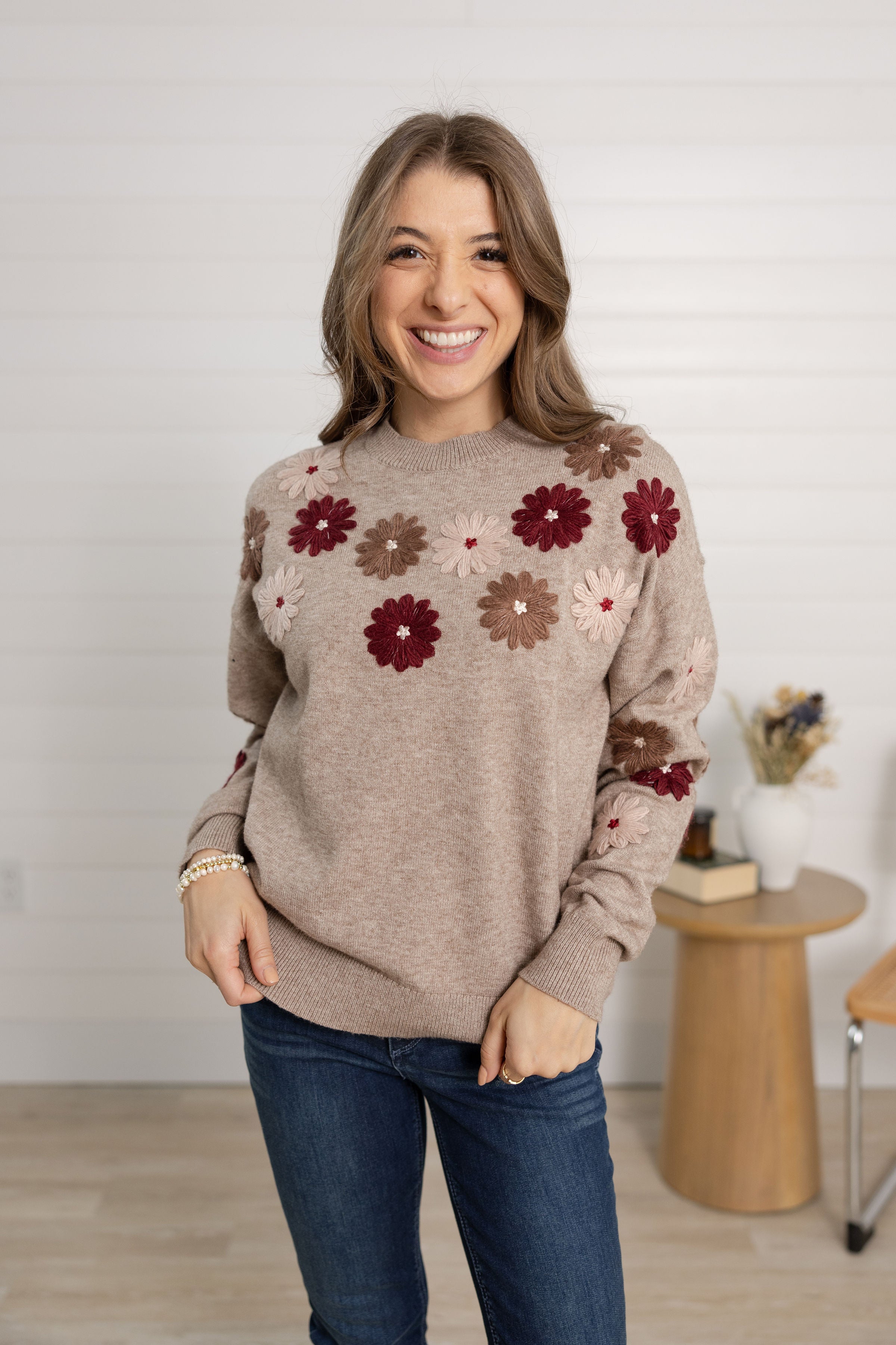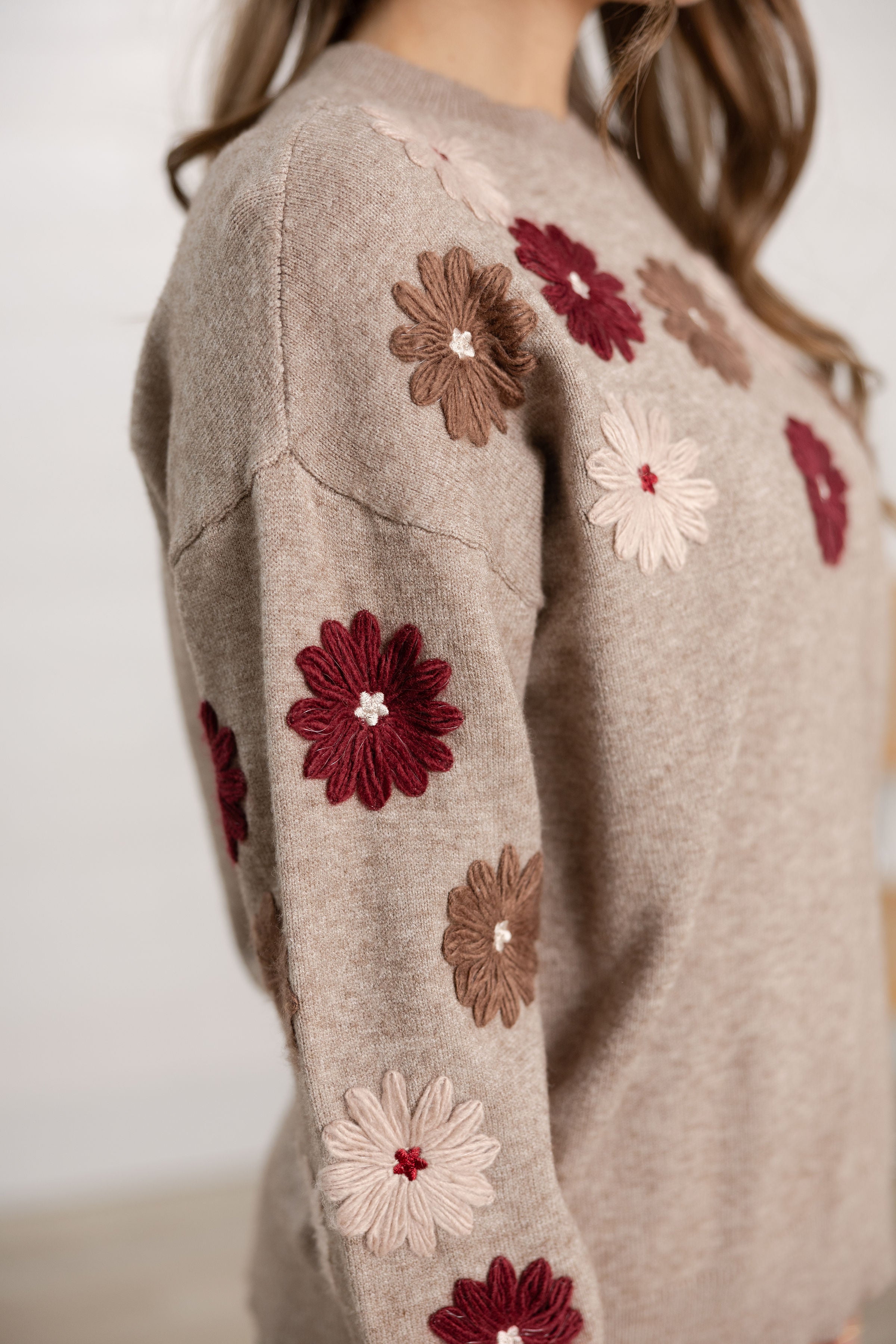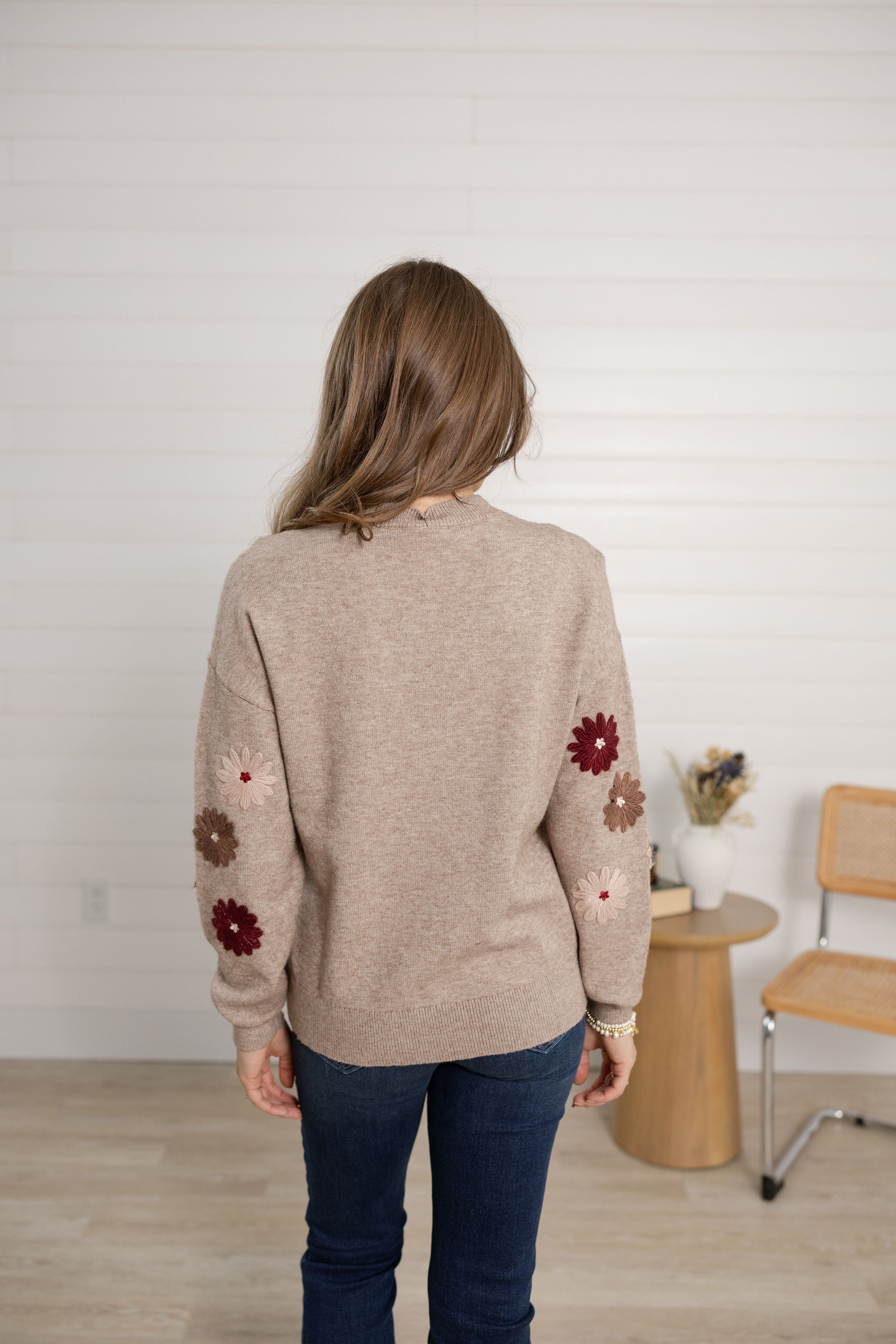 Floral Embroidery Crew Neck Sweater