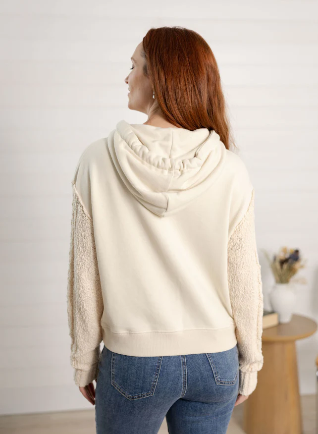 This isn’t your average hoodie—our Embroidered Crochet Sleeve Hoodie brings all the comfort with a stylish upgrade. The soft cotton-blend body is finished with a linked “D” embroidered graphic at the front, while the sleeves switch it up with a crochet knit that adds unexpected texture and charm. A playful mix of cozy and chic you’ll want to wear on repeat.
