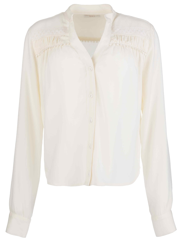 ADRIE - LS TOP W/ TRIM AND SHIRRING