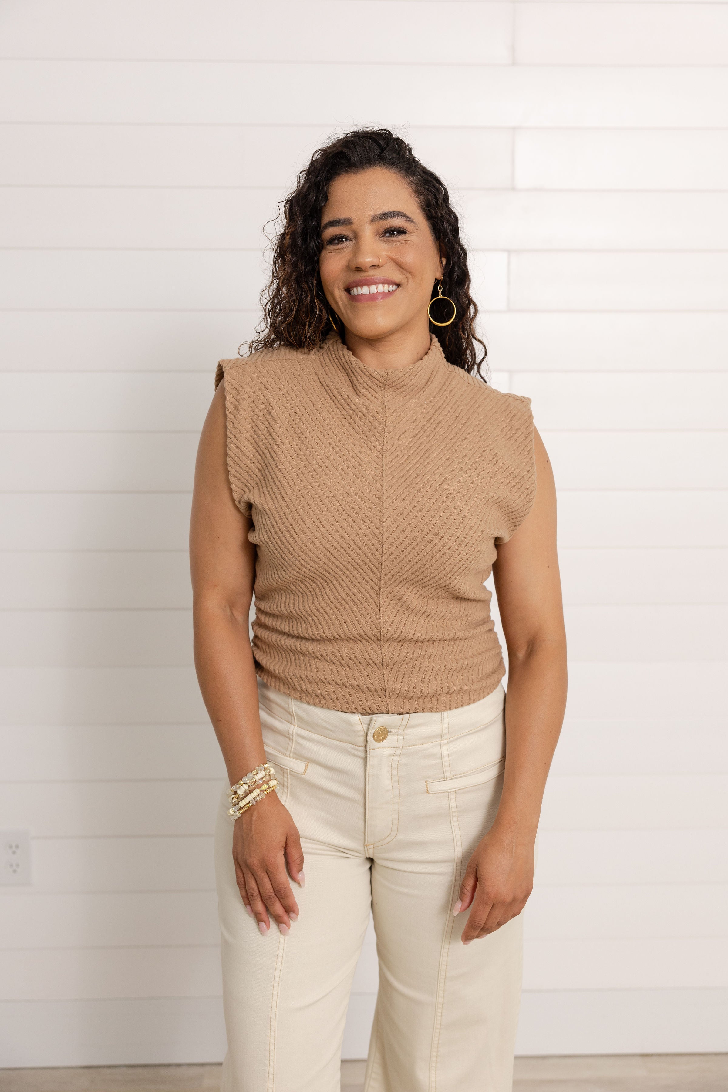 Meet your new layering hero: the Mac and Me Funnel Neck Side Ruched Top. With its cozy funnel neck and body-loving diagonal ribbing, this top is all about comfort that flatters. The ribbing angles inward to create a subtle hourglass effect, and the side ruching adds a little shape without clinging. It’s soft, stretchy, and effortlessly polished—aka perfect for real life.