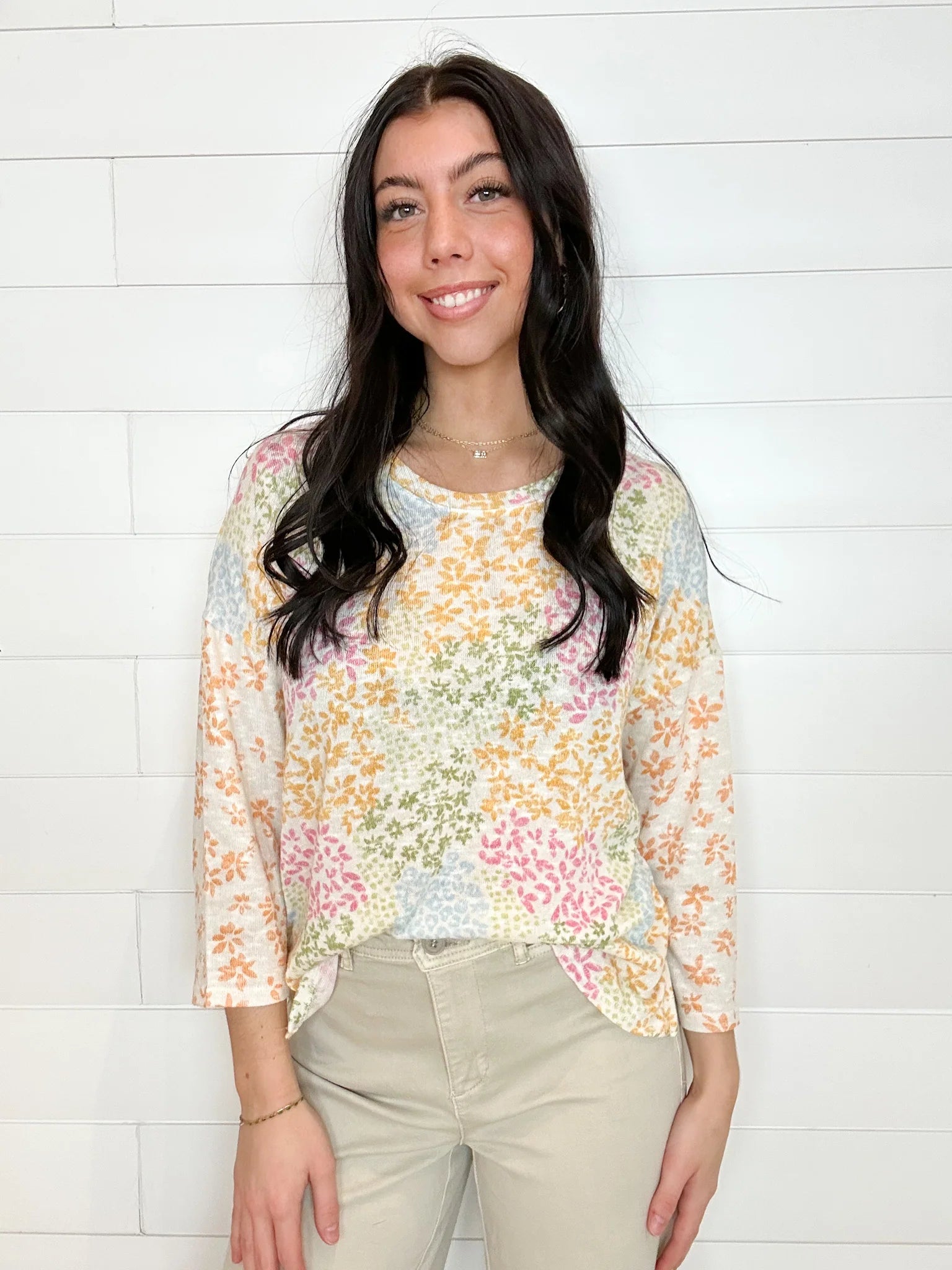 The MB Mixed Ditsy Floral Crewneck Top is the perfect blend of comfort, versatility, and everyday polish. Made from soft printed Hatchi fabric, this top offers gentle stretch and a relaxed silhouette that feels as good as it looks. The classic crew neckline and 3/4 sleeves make it ideal for layering or wearing on its own, while the mixed ditsy floral print adds just the right touch of charm. Effortless, seasonless, and endlessly wearable.
