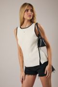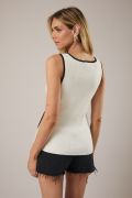 BOAT NECK SLEEVELESS SIDE BUTTON RIBBED TANK
