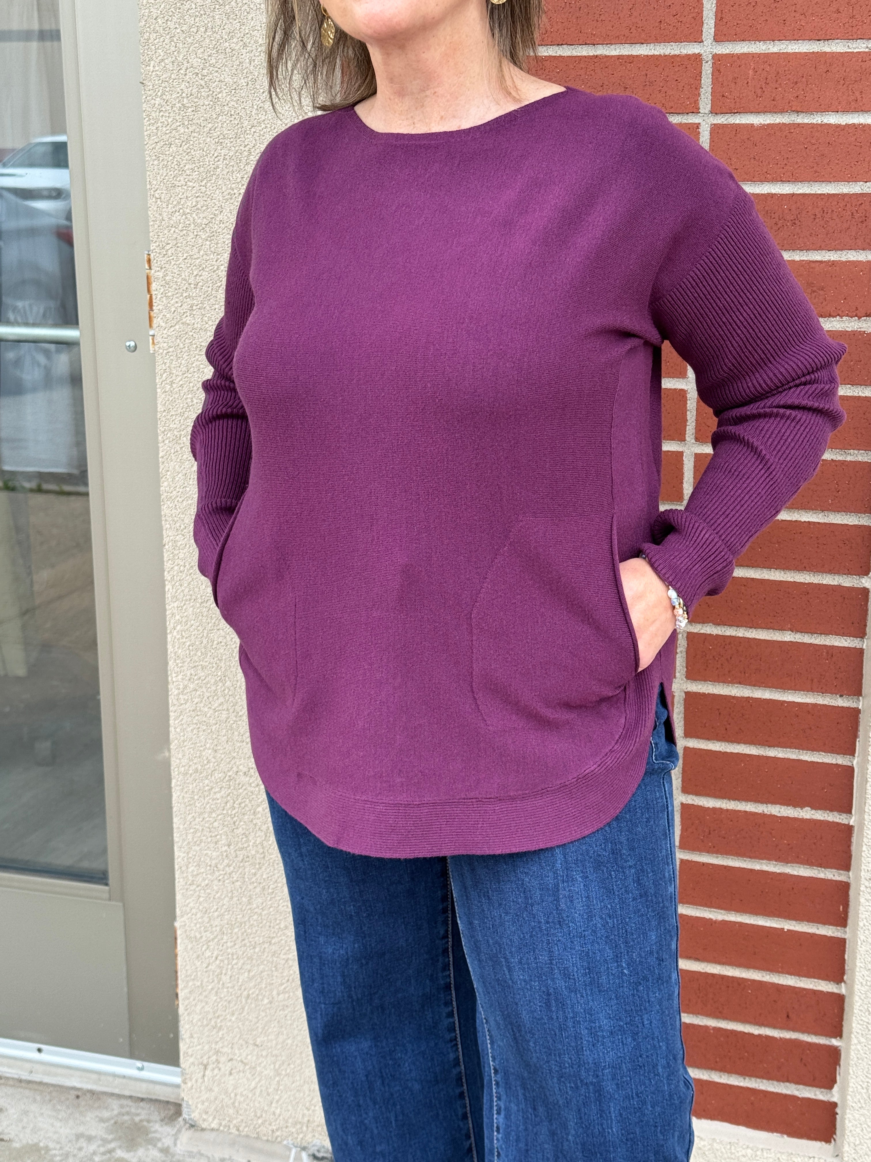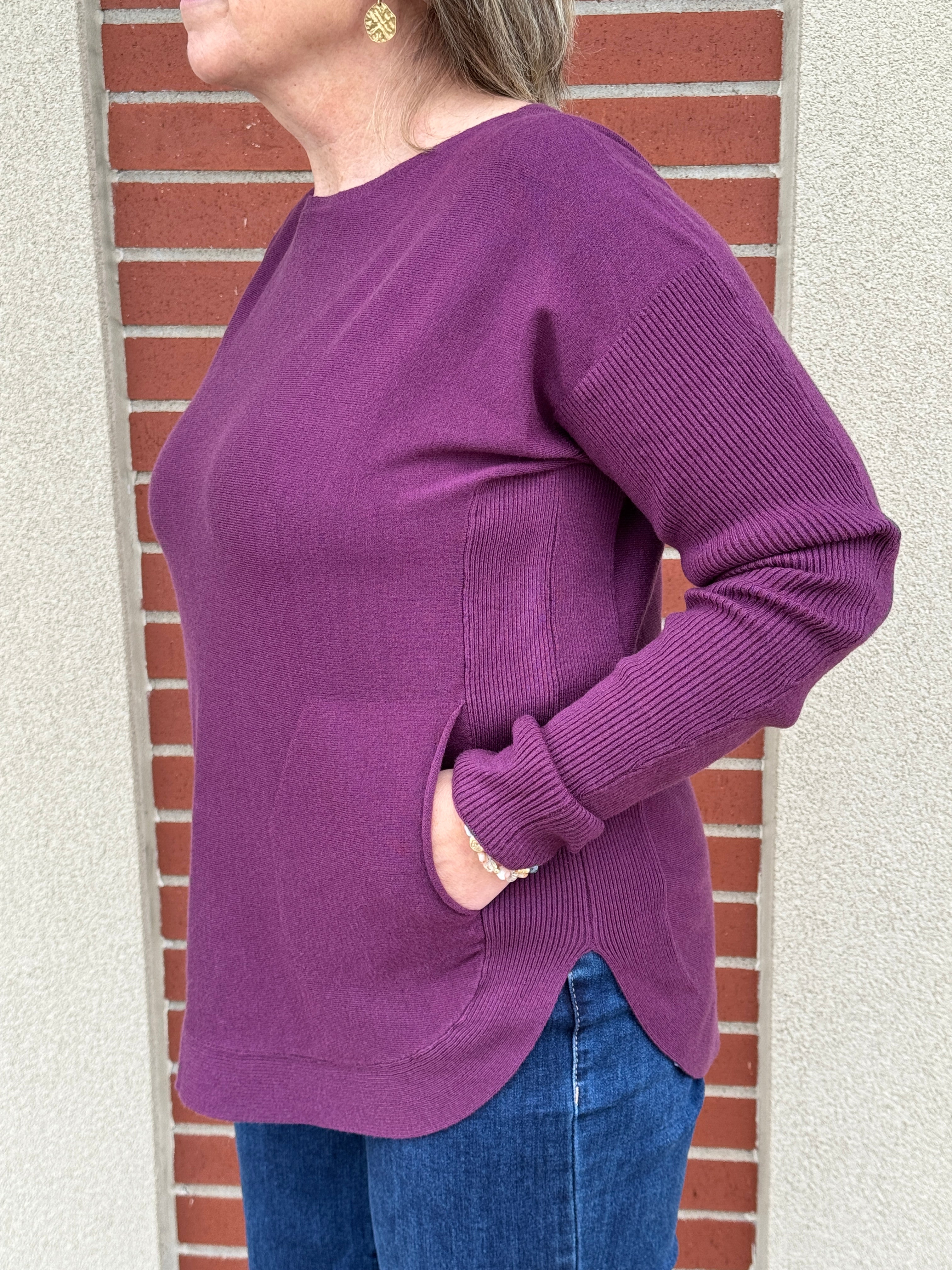 Sweater With Back Lace-Up Detail, Rounded Hem And Side Pockets