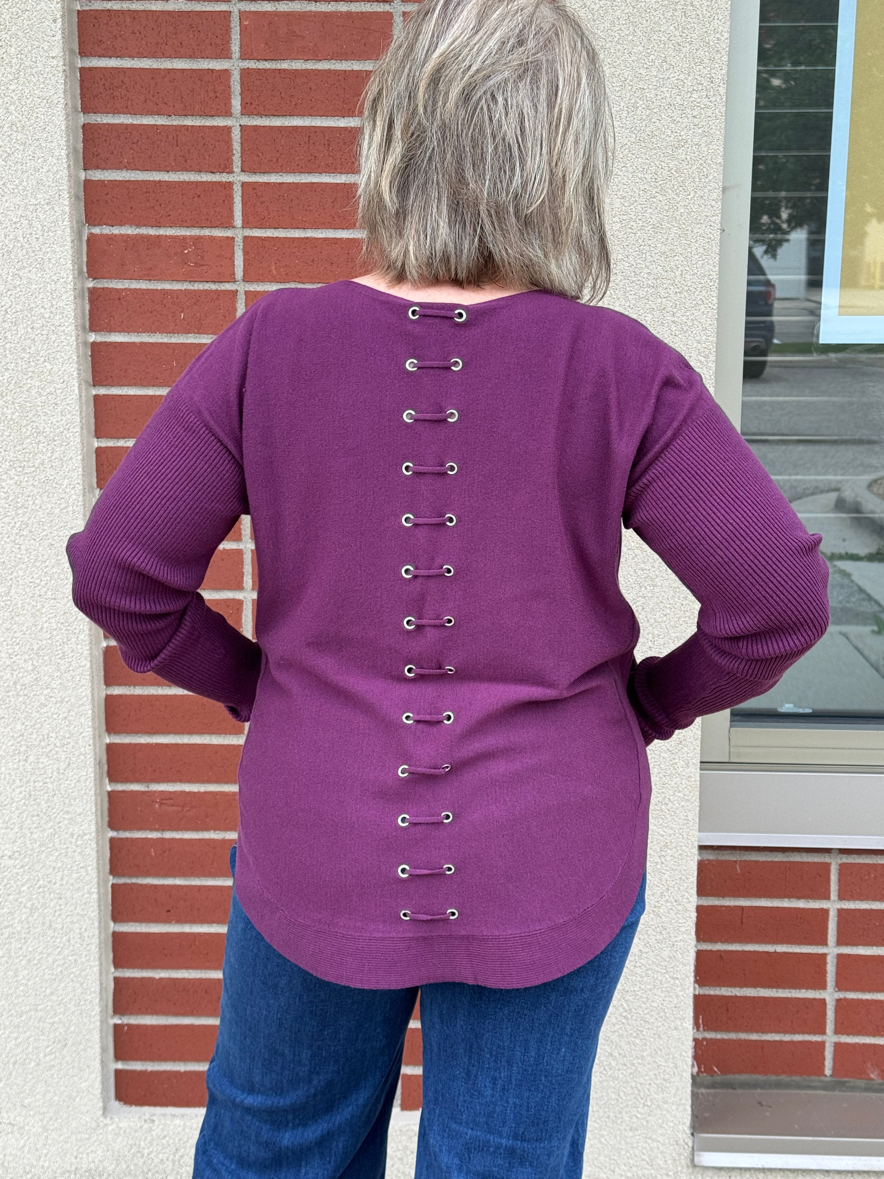 Charlie B Knit Sweater With Back Lace-Up Detail